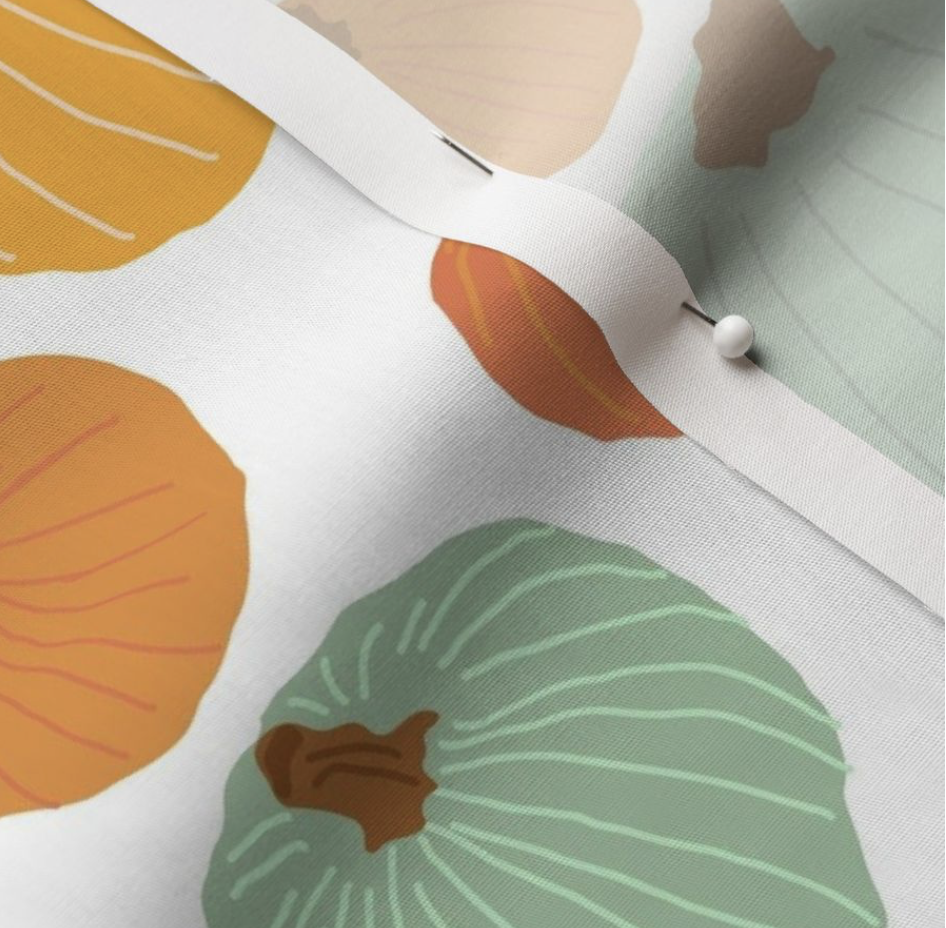 Last spring, I reopened my Spoonflower shop, with a renewed sense of eagerness to see my designs on fabric. I am continually updating and adding new designs to my shop, and this week I have am highlighting my Jarrahdale Pumpkins design.