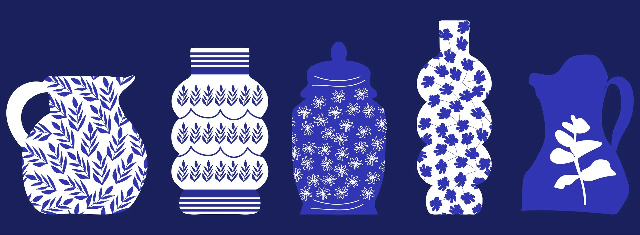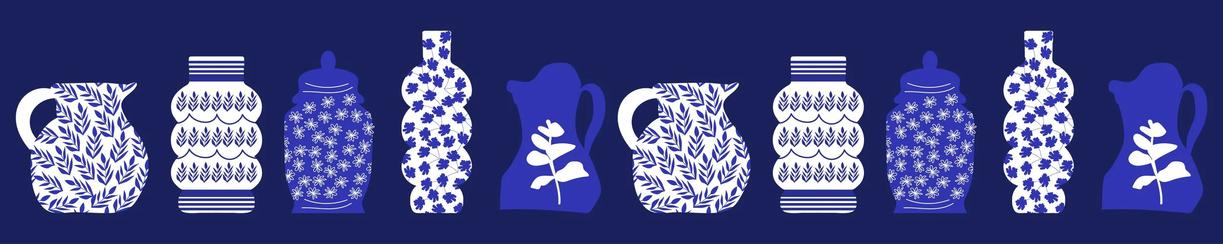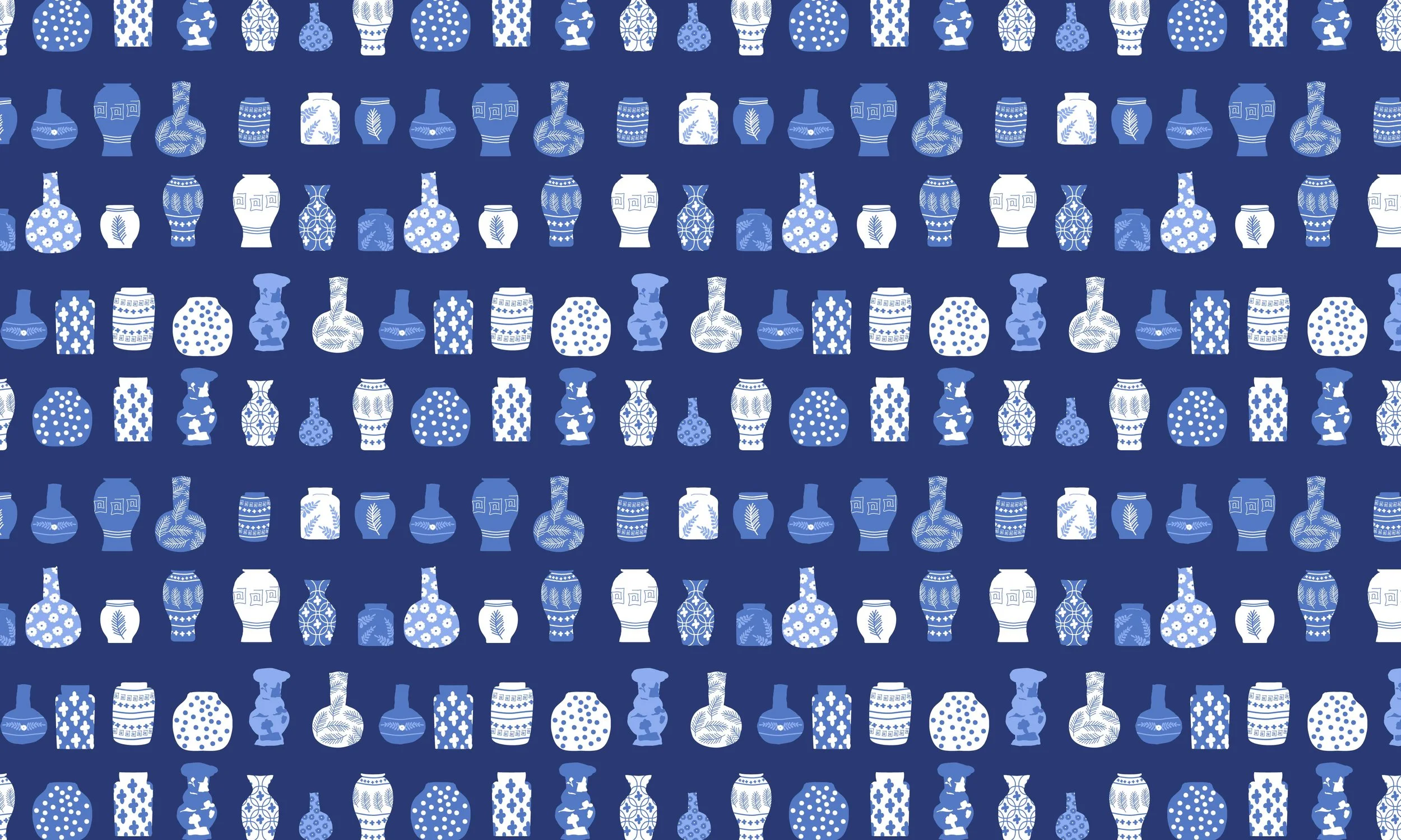 These are simple patterns with one motif in two or three colors I used for some of the chinoiserie ceramic illustrations.