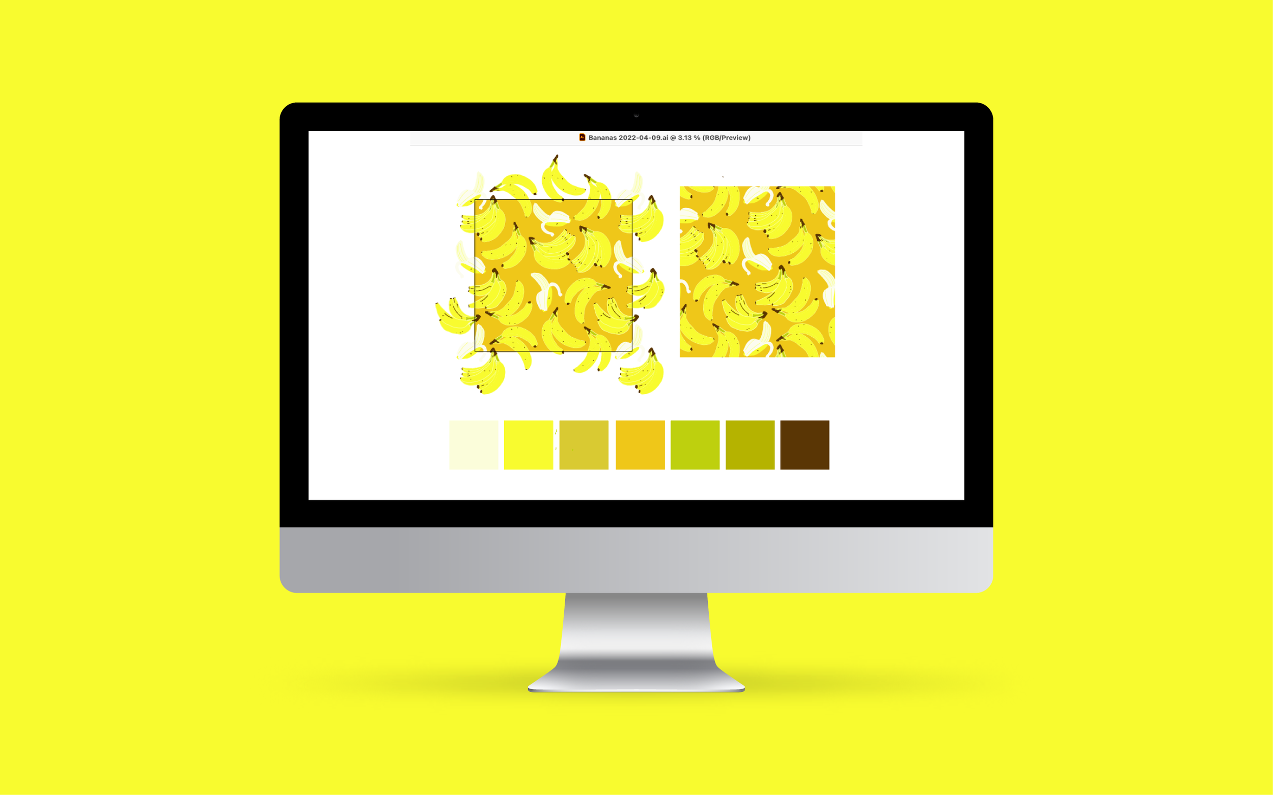 The color story for the banana pattern includes shades of cream, yellows, greens, and brown. I tend to favor a more retro aesthetic in my illustrations, which came through in this pattern.