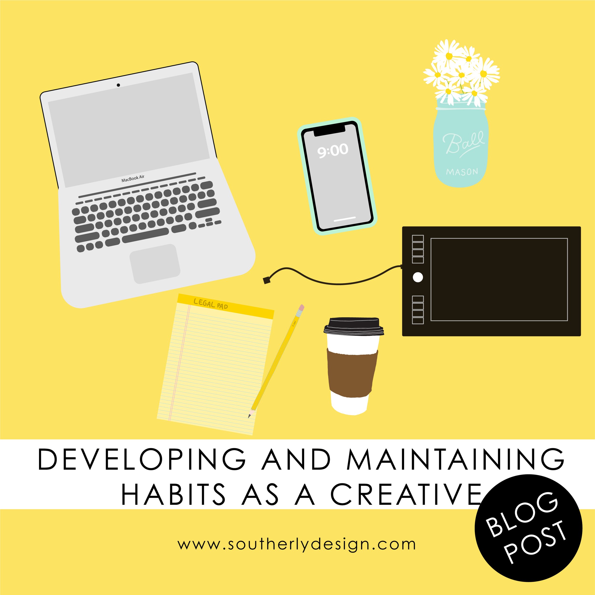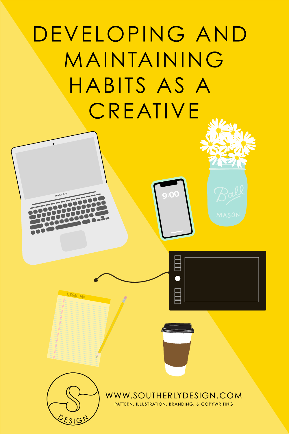 I read once that to solidify a habit you have to repeat it about 18 times. Not sure where that number came from, but as a psychology grad, I love mental tips and tricks that help change behavior over time. Habits are routines that have to be practiced and built like muscle-memory. Learning to develop and maintain habits as a creative and artistic person takes time and practice. Routines and schedules are important to stick to when implementing new habits in your daily life.