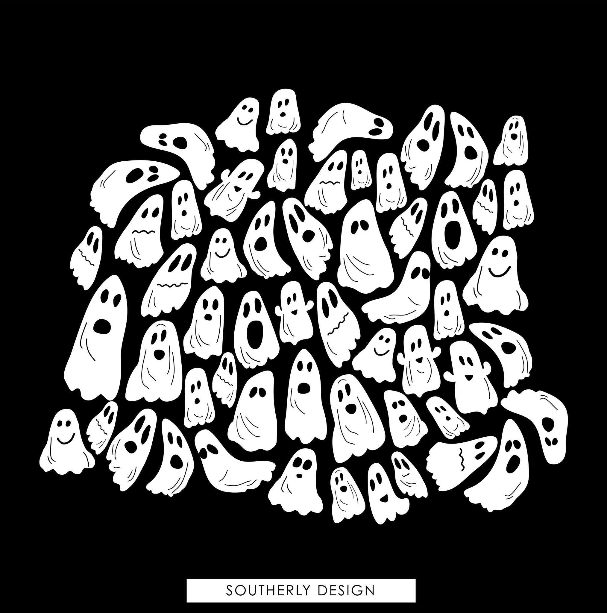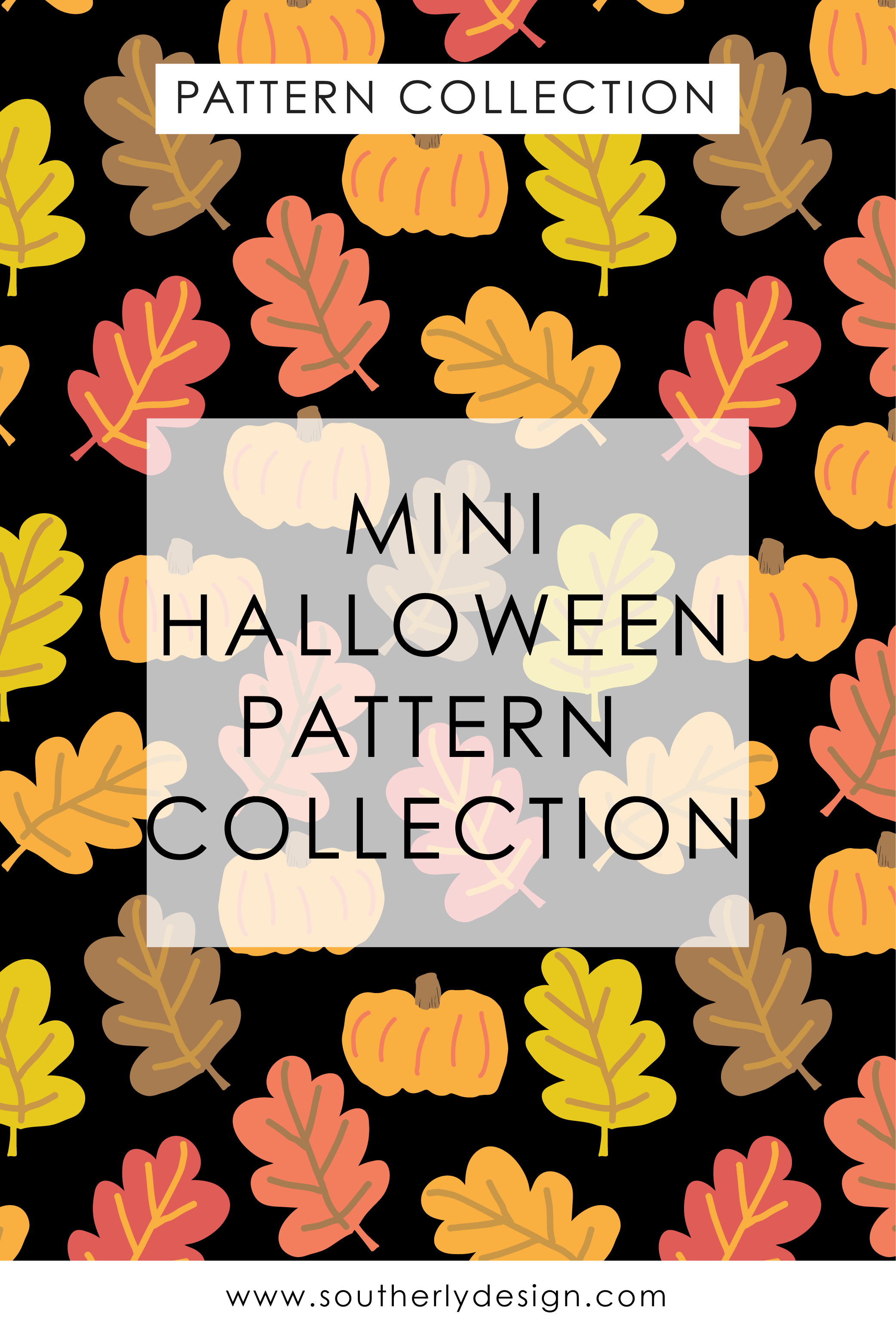 A mini Halloween Pattern Collection featuring cute ghosts, pumpkins, fall leaves, candy corn and a simple color palette! I added a few more ghosts to the collection. Sometimes I turn a mini collection into a full collection, with 9 patterns. I did not have a lot of fall patterns and prints so I wanted to add a few this season.
