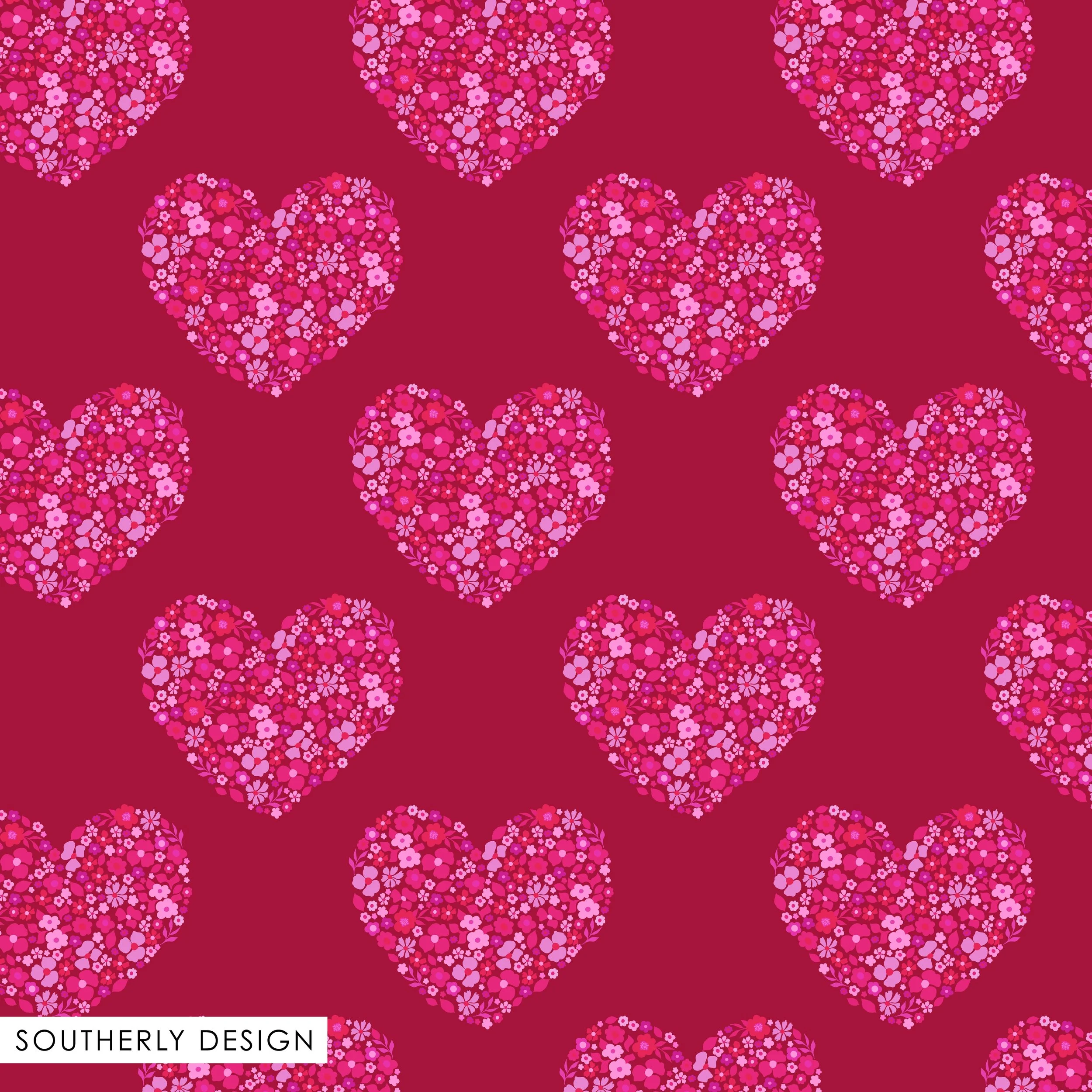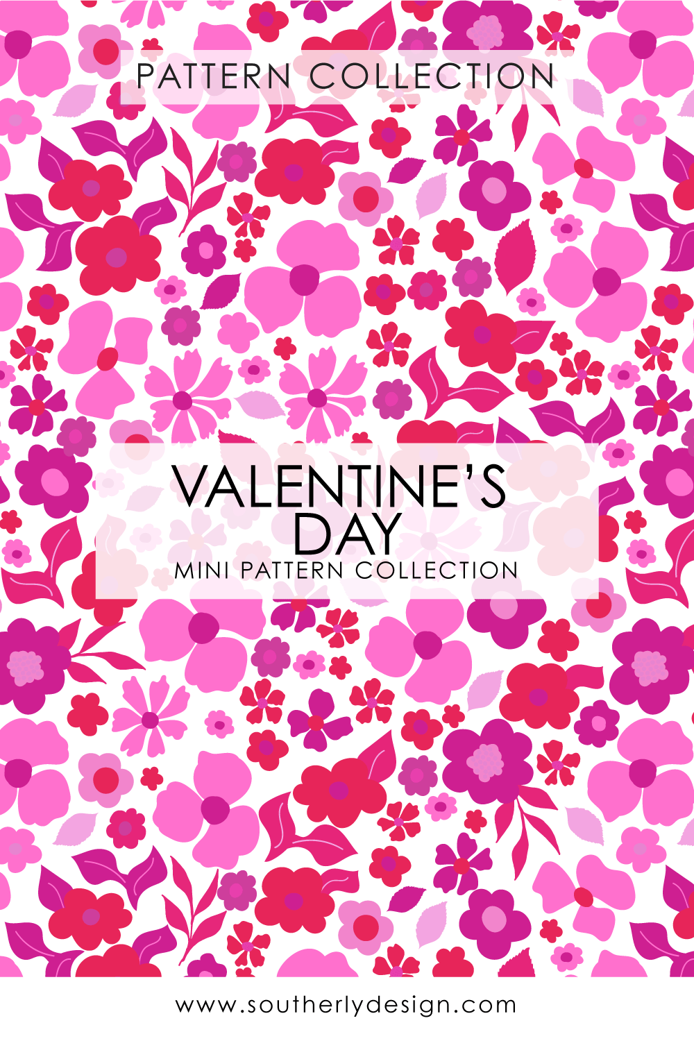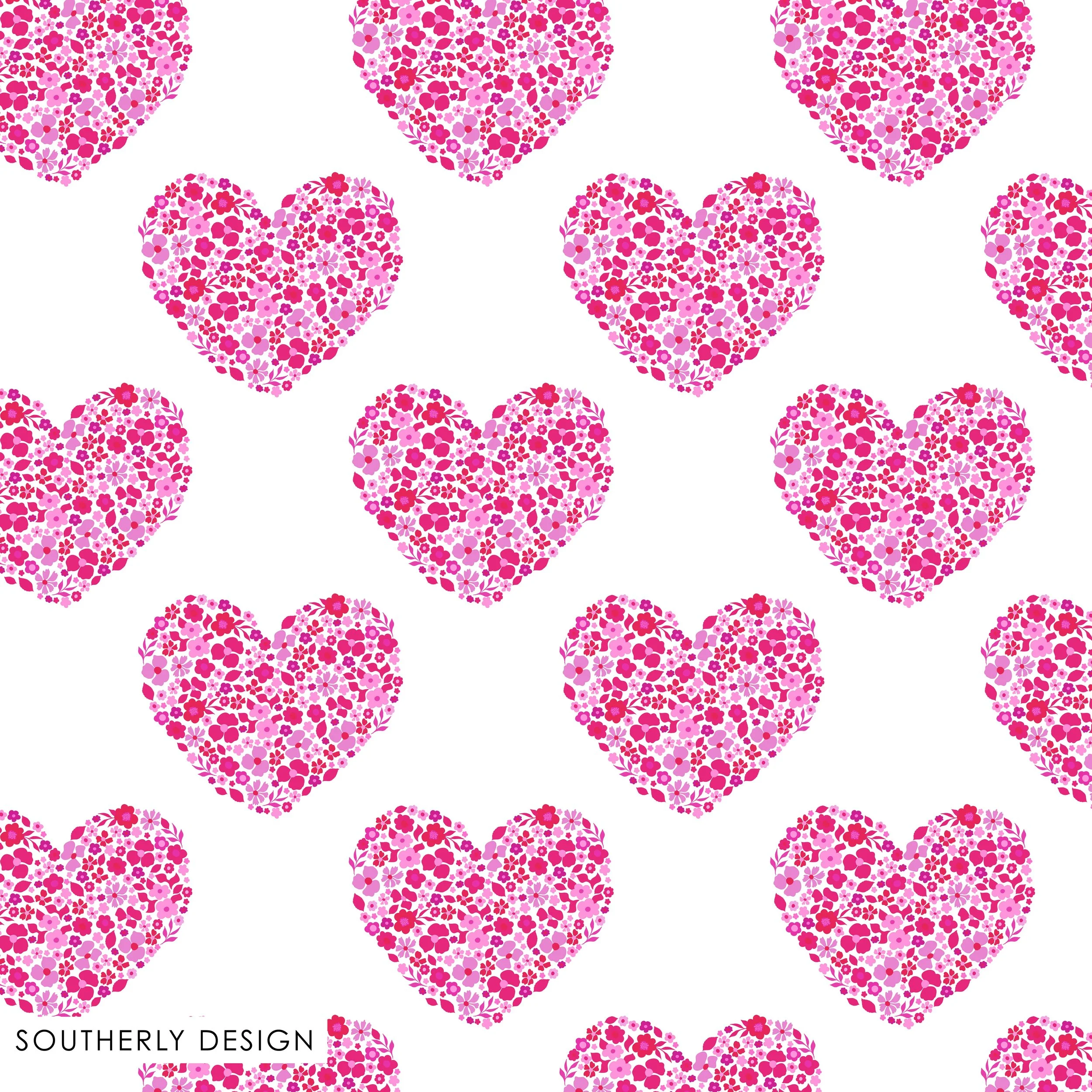 I want to expand this mini collection into a full collection. I love using the floral motif shapes to make a pattern, like my shamrock florals in the St. Patrick’s Day collection. For this collection, I used the florals to create a heart-shape for Valentine’s Day.