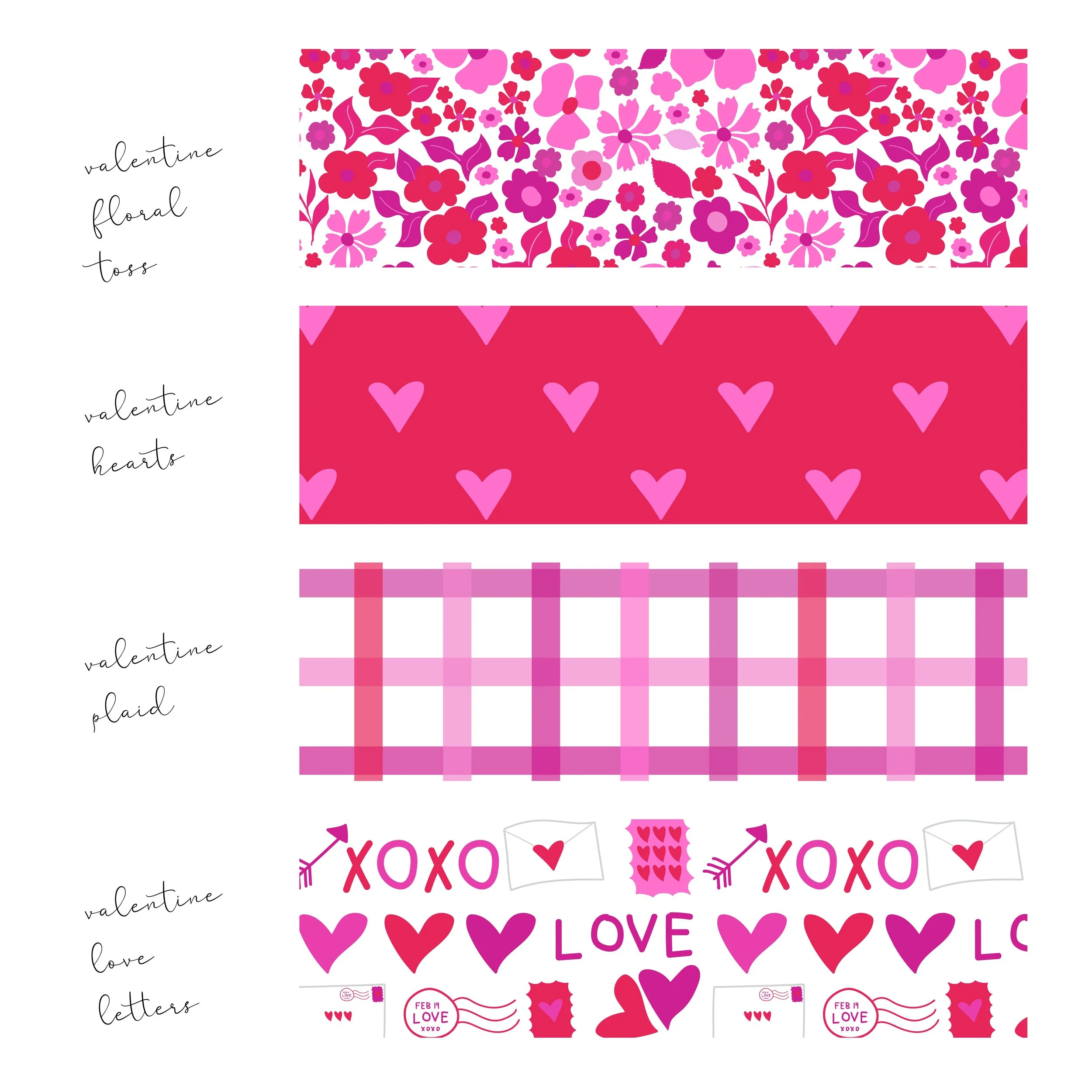 The Mini Valentine’s Day Pattern Collection has 4 patterns like my other mini collections. The collection features the prints: valentine floral toss, valentine hearts, valentine plaid, and valentine love letters.