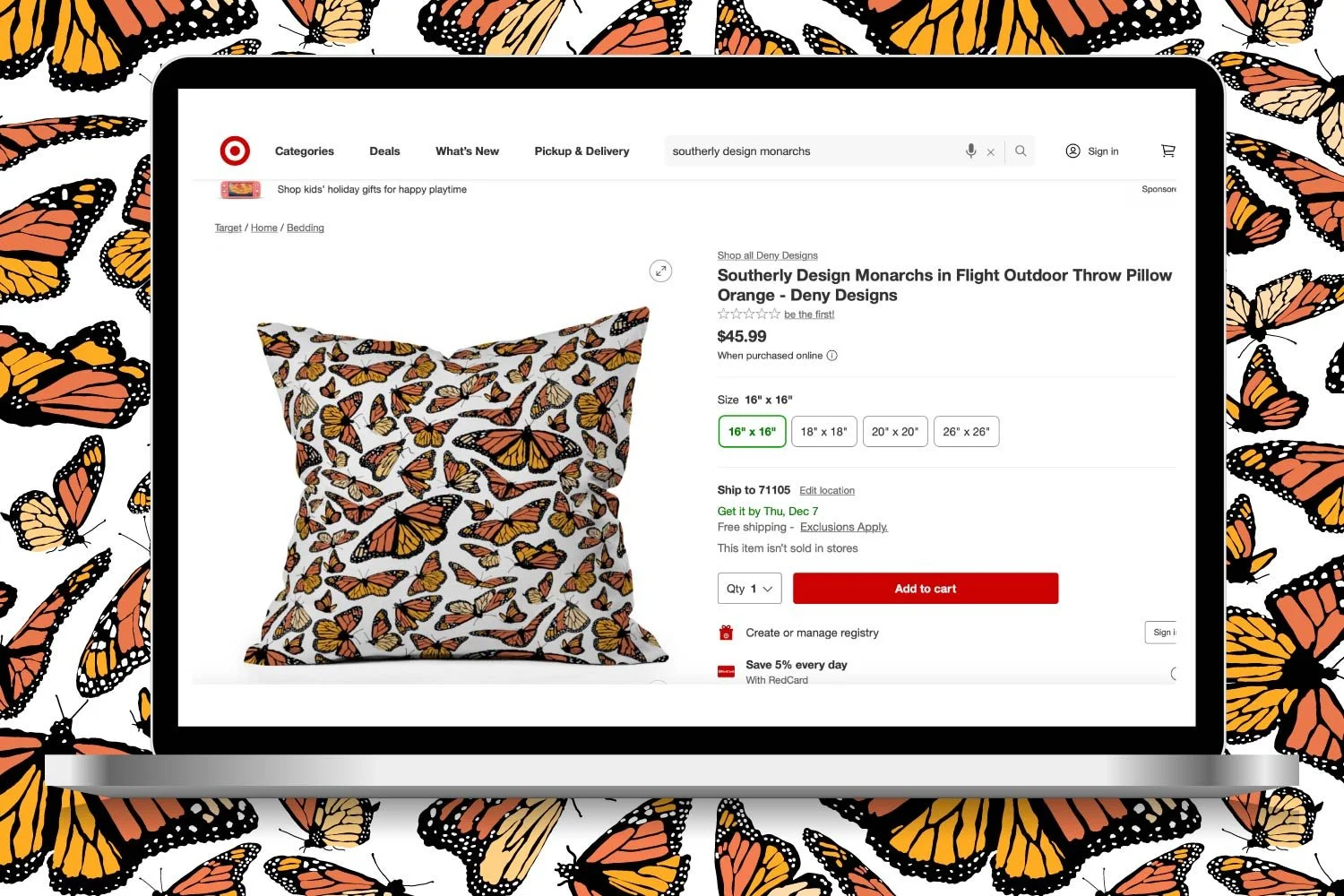 Monarchs in Flight is available on outdoor throw pillows through Target.com. It’s incredibly thrilling to experience my first licensing deal! I never imagined having a product sold at a national retailer.